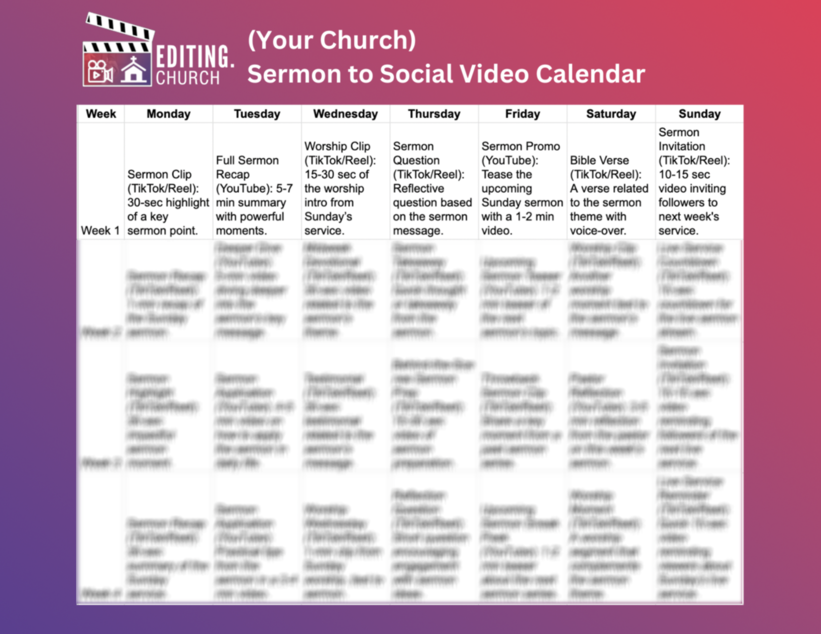 What to Do: Post clips consistently throughout the week. Spread out your sermon clips to keep the conversation going and keep your church top-of-mind.